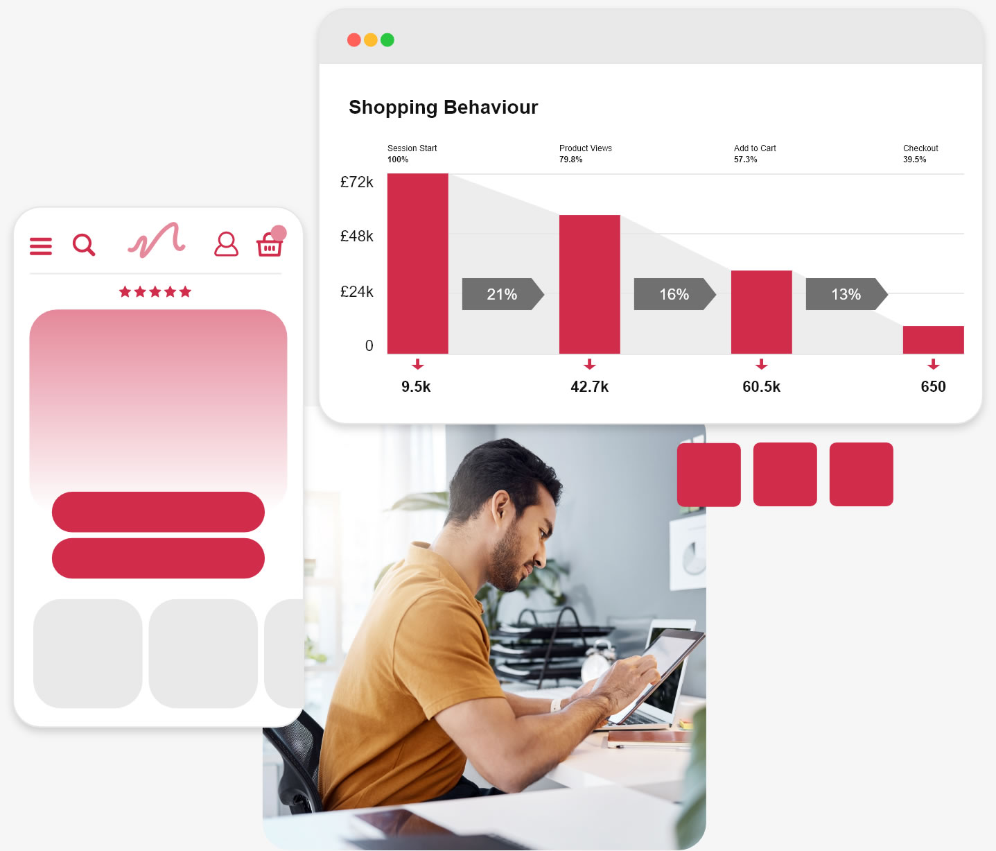 Your website should offer multiple entry points, each tailored to optimise the user journey for both first-time and returning visitors. We apply funnel analysis to identify key drop-off areas, recognising that each additional click can result in a 10–15% loss in visitors. To boost conversion rates, we focus on eliminating friction points—always with a ‘mobile-first’ mindset to address the unique challenges of mobile experiences.